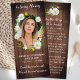 Blommigt av Rustik Daisy Sympati Funeral Prayer Cards. Det här moderna minneskortet för böner i elegant har en daisy blommor på en rustik trädesign. "In Loving Memory" Anpassa det här minneskortet för begravning med dina nära foto, namn & data och känslor. Tillbaka ~ 'May you Always Walk in Sunshine' Dikt, som kan vara personlig, var snäll och nå ut om du vill ha en design med en särskild dikt annan än. Det här minneskortet kommer att vara en välkänd keepé, för begravningstjänster och firande i livet. COPYRIGHT © 2020 Judy Burrows, Black Hund Art - Med alla Höger reserverade. Funalt bokmärke för Rustit Memorial Prayer Card