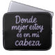 Protege tu portátil con autenticidad y un mensaje que habla por ti. Esta funda lleva la frase “Donde estoy mejor es en mi cabeza”, perfecta para quienes encuentran en su mundo interior el lugar más seguro, creativo y tranquilo. Ideal para estudiantes, freelancers o emprendedoras introvertidas que quieren un accesorio práctico, resistente y con mucha personalidad. Porque tu portátil merece un espacio tan único como tus pensamientos.