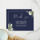 An elegant navy blue, funeral memorial card featuring watercolor botanical garden greenery foliage. You can personalize with your own thank you message. Designed by Thisisnotme©