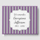 Den här gästboken har lila och grått rand, tillsammans med personlig namn och födelse-/dödsår. Den skulle kunna användas för att registrera deltagare i en begravning och alla de underbara minnen de har av den nyligen avlidne personen.
