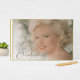 En vanlig minnesfotogäst bok med vit övertäckning. Ett foto kan placeras på den personliga gästen bok på ett vitt överlägg. Informationen ändras lätt till din egen anpassningsbar.