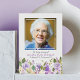 Ett enkelt sätt att tacka dem som närvarade vid begravningen och stödde dig under din sörjningstid är att utföra en begravning/tackkort på ett platta kort. Ett fotokondoleans tackkort med en klassisk vit bakgrund, lila lavender-blommor, ett foto av den avlidne, en minnesordning och en tackmall som är enkel att anpassa.