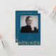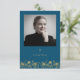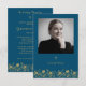 Golden wildflowers desing and in loving memory quote for dear ones funeral service invitation on blue background with a photo.