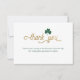 Det här tackkort-kortet för klass och elegant har en grönt med fyra löv klöver (schysrock) ovanför ord"Tack" i ett guld-skript (simulerad folie). Bakgrunden är vit, men kan ändras till valfri färg. Kortets baksida är grönt och kan även ändras till valfri färg.