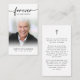 Funeral Sympathy Photo Forever i vårt Hearts Kor Prayer Card. Behålla minnet av en älskad nära med det här anpassningsbar personlig-bönkortet som innehåller ett uppskattat foto, titeln FOREVER IN OUR HEARTS, namn och data på framsidan och en redigerbar bön eller ditt minnesmärke som accentueras med ett enkelt kor. Med sin enkla, men ändå elegant, klassiska svarta och vita design och moderna skript med slagord gör det en meningsfull keepy för vid en begravning, minnesgudstjänst eller Firande i Life och erbjuder komfort och en varaktig hyllning för familj och vänner. Den lilla och bärbara storleka på 3,5 x 2 tum (plånboksstorlek) gör det bekvämt för nära och kära att bära med sig den som en påminnelse om din älskades liv och själ. Anpassningen gör varje kort unikt.