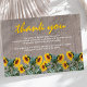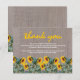 Funeral tackkort på ett platt inbjudningskort är ett enkelt sätt att tacka dem som visade dig bekvämlighet under din sörjningstid. Det här rustiska begravningskortet innehåller en barwood-bakgrund, en rad ljusa solblommor av gult och en personlig tack till din mall.