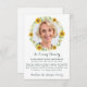 Modern vattenfärg Sunblommor Sympati Photo Funeral Tack. Dessa sympatikort för begravning har en unik fotomall i solroskran, namn och data, på en modern vit design. Anpassa dig med ditt tack. Dessa minneskort är perfekter för begravning av tackkort eller firande av livets tackkort. COPYRIGHT © 2020 Judy Burrows, Black Hund Art - Med alla Höger reserverade. Funeral TACK Solrossympati Fotokort