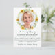 Modern vattenfärg Sunblommor Sympati Photo Funeral Tack. Dessa sympatikort för begravning har en unik fotomall i solroskran, namn och data, på en modern vit design. Anpassa dig med ditt tack. Dessa minneskort är perfekter för begravning av tackkort eller firande av livets tackkort. COPYRIGHT © 2020 Judy Burrows, Black Hund Art - Med alla Höger reserverade. Funeral TACK Solrossympati Fotokort
