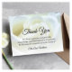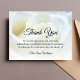 Vit blommigt ro begravning tackkort på ett platt inbjudningskort är ett enkelt sätt att tacka dem som visade dig bekvämlighet under din sörjningstid.
