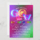 Ett festligt födelsedagsfest inbjudan med ett färgstarkt tema för glöd i mörken.