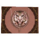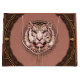 Fungerande och konstnärlig bild av en tigers ansikte som med sin uppmärksamhet på detaljer imponerar. Tigern, vars päls-skuggor i en mjuk rosa, dekorerad med intrikat mönster som understryker djurets skönhet och elegans, är i första hand inriktad på tigern. Tigerns ljusblå ögon fångar tittaren, ge ansikte ett intensivt uttryck för styrka och ära. På det hela taget kombinerar den här designen kraftfull symbolik med en mjuk palett i färg, skapar den både tilltalande och djup.