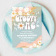 Fira din lilla enastående dag med denna retroinspirerade "Groovy One"- födelsedagsinbjudan. Med vågiga pastellfärgade ränder, prästkragar, fredstecken, fjärilar och leende blommor ger denna 1970-talsdesign fred, kärlek och kul till din fest. Perfekt för en första födelsedagsfirande, denna färgglada boho-inbjudan sätter tonen för ett glatt och fantasifullt evenemang. Anpassa med dina festdetaljer och gör din dotters eller sons milstolpe oförglömlig.