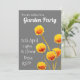 Party eller funktionsinbjudan till ett party på en trädgård eller någon Garden Party luncheon med en originalvattenfärgskonstruktion av gult Australian Billy Button eller Craspedia-blomman. Texten i inbjudan är helt anpassade att inkludera dina egna personuppgifter.