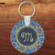 Funky Abstrakt Blue Blommönster Monogram Nyckelring