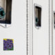 Funky Violet målar motiv av Lisa Lorenz på en magnet