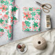 Funky, abstrakt blommor i grönt, persika och korall på vit omslagning papper. Roligt för vem som helst och tillfälle.