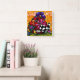 Funky Chunky Blommigt Chicken Colorful Personlig Fyrkantig Klocka