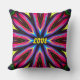 This is not a pillow for any minimalist, this is for the one who is in love with bright shout-in-your-face colors. Front side of the pillow is a large pattern with the option to customise the text in the middle. The back side shows the same pattern, but smaller and repeated which makes a whole different image option to display.
