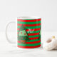 Fetstigt, ljust rött och grönt rand med Julgran-design på mugg jul.