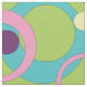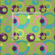 En ljusstark bakgrund för grönt läggs till med en funky mönster av cirklar, punkter och ringar i en mängd vibrerande färg, inklusive rosa, blått, lila och gult.