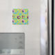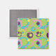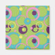 En ljusstark bakgrund för grönt läggs till med en funky mönster av cirklar, punkter och ringar i en mängd vibrerande färg, inklusive rosa, blått, lila och gult.