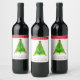 Lägg till en speciell avslutande beröring till dina festliga vin-presenter med en personlig med hälsning. Den här designen har en funky grönt Julgran med röda bubblor. Anpassa enkelt hälsning, vin och namn.