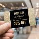 Det här hänskjutningskortet för skönhetsalon i funky är perfekten för att hänvisa dina vänner och din familj till din favoritsalong. Kortet har en djärv och modern design med en glitter guld-bakgrund och fet text. Använda Zazzles design verktyg för att lägga till dina personuppgifter och skapa ett hänskjutningskort för anpassningsbar som gör att dina vänner och familj vill göra bok till en möte på din favoritsalong.