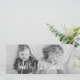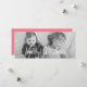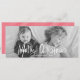 Det här moderna fotokortet har ett vitt kalligrafiskt skript över ett fullt-utfallsfoto. Den här designen rymmer ett vågrät på kortets framsida. På motsatt sida hittar du en röd och vit diagonal rand mönster som kan tas bort eller ändras. Du kan också lägga till ytterligare ett foto eller text till baksidan genom att välja alternativet "anpassa ytterligare".