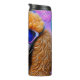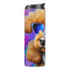 Funky pudel hund med ett par öga-fångande solglasögon med en unik utformning som har ett kalejdoskop med nyanser i rosa, blått, lila och orange.