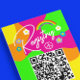Bold and colorful retro bridal shower with flowers, rainbow, and peace sign