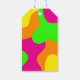Djärv och färgrik retro bröllopsfest med blommor, regnbåge och fredstecken
