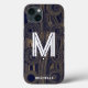 Funky Retro Groovy Navy Blue Guld Glitter Monogram
