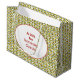 Denna stora presentsäck är utsmyckad på baksidan och framsidan med en upprorsbänk stil mönster oliv grönt med beadliknande avlånga former som ställs in med jämna mellanrum längs det raka lodrät linjer. Alla färg på båda sidor kan redigeras i den här speciella bilden för att få en anpassningsbar.