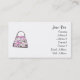 Krisp och rent, feminin affärskort som har en mode-handväska med rosa och mörk grått blommor & polka dots. grafik med J.Rett Graphics