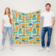 Funky Turcoise Orange Grönt Squares Mid Century Fleecefilt