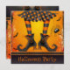Lustigt, söta inbjudningskort i Halloween fest, för barn, familj och vuxnor med ett par vita häxor ben och fötter i svarta, tå svarta bås. Hon bär en funky svart kjol med orange polka dots och groovy svart och orange rand. Det finns en söt spindel bredvid henne på den söt orangen och en svart grym bakgrund och det finns söta fladdermöss runt henne. Observera: Alla inbjudningar på Zazzles webbplats har platta tryckta bilder. Roligt, snyggt Halloween humoristiska häxinbjudningar till party för barn, familj och vuxnor. Hela texten är helt anpassade/anpassbar till kostym som du behöver - många typsnitt och färger att välja bland. Dessa visuella inbjudningar visas på båda sidor. Originalteckningar, frukta-doodles.com och vetorart.com Om du behöver hjälp med att anpassa din produkt kan du kontakta mig via min butik och jag blir lycklig för att hjälpa dig.