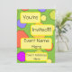 Inbjudan dina gäster med den här personligens funky och den färgstarka inbjudan till rektor 60:s/70:s temainbjudan! Fullt av orange-, gult-, blått- och lila-cirklar på en kalkgrön bakgrund.