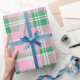 Funkyns Rosa och Grönt Play Tartan Mönster Presentpapper