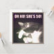Fira en milstolpe med skratt med superskojet födelsedagsfest inbjudan som har en bild av en katt som täcker hennes ansikte.