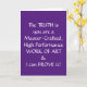 Perfektens 60:e födelsedagskort. Utsidan säger: "TRUTH är du ett konstgjort konstverk, och jag kan bevisa det.." Inuti står det: "Hur kan man annars förklara att man går från 0 till 60 på 2,3 sekunder??? GRATTIS PÅ FÖDELSEDAGEN". Vi donerar en del av varje försäljning till The Breast Cancer Research Foundation.