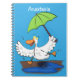 Funny anka med paraplydansande tecknad anteckningsbok