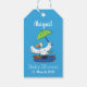 Funny anka med paraplydansande tecknad presentetikett