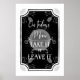 Muren poster med ett antika köldsymboltecken med texten "På menyn Today - Ta det eller Lämna det". Bakom detta ligger en klassisk etikettform i svart, grått-stjärnburst, diskar, silvergods och glas. En underbar poster att hänga på väggen i ett svartvitt kök.