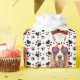 Lustigt presentemballage pappert för Basset Hound mamma, pappa eller hund älskare. Hunden bär på hjärtsolglasögon i rött och en matchande båglängd med tass avtryck och röd hjärtbakgrund.
