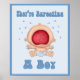 Ett Baby har en Poster på sig en blöjor där tårar flyger och munnen är öppen när han slår till. De väntar sig en pojke på ljusblå bakgrund. Tillbehör till roligten för babyskor.
