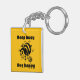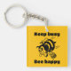 A cute bee on an acrylic keychain. Use "Personalize this template" to change the "Keep busy, bee happy" text and create a unique, customized item; text changes are reflected on both sides. A little reminder to stay upbeat and busy, with a flexible magnet featuring my old style busy bee cartoon. Drawn to motivate myself, loosely based on a buddhist idea that we experience happiness in the process of doing things rather than at the end. "Don't worry, bee happy" might be popular alternative text. Featuring a happy worker bee carrying buckets of honey or nectar.