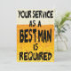 Få din bästa mans uppmärksamhet med den här roliga bästa mannens inbjudan. Design har ölbakgrund och modern "din tjänst som bäst kräver"-skript. Lägg till meddelandet på baksidan. Klicka på anpassa ytterligare om du vill ändra teckensnitt/ färg / stil etc.