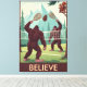 Funny Bigfoot believe canvas print for all those out there searching in the wilderness for the elusive Bigfoot. If you believe in Bigfoot, these surreal posters in the style of the iconic WPA art posters of the 1930s are the funny Bigfoot canvas prints for your wall.