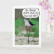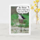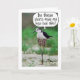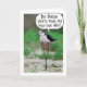 En långbent smala slätt fågel tycker inte om hur ben ser ut i hennes nya kort. Långbenad fågel med kort i bild. Lustigt födelsedagskort för kvinnor.