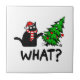 Funny Black Cat Gift Pushing Julgran over C Kakelplatta